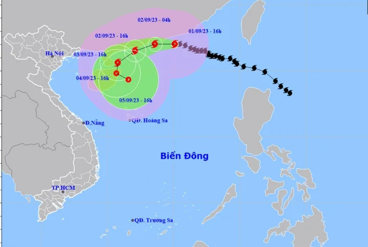 Bão số 3 liên tục đổi hướng, lúc 16h ngày 1/9, sức gió mạnh nhất vùng gần tâm bão mạnh cấp 14-15 (150-183 km/h), giật trên cấp 17.