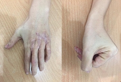 Theo bác sĩ khoa Phỏng - Tạo hình , anh Nam bị bỏng điện với diện tích 6%, tập trung ở 2 cánh tay, mông, đùi phải. Đặc biệt 2 cánh tay bị bỏng rất nặng với 4% độ 3, độ 4, gây chết cơ, xương.