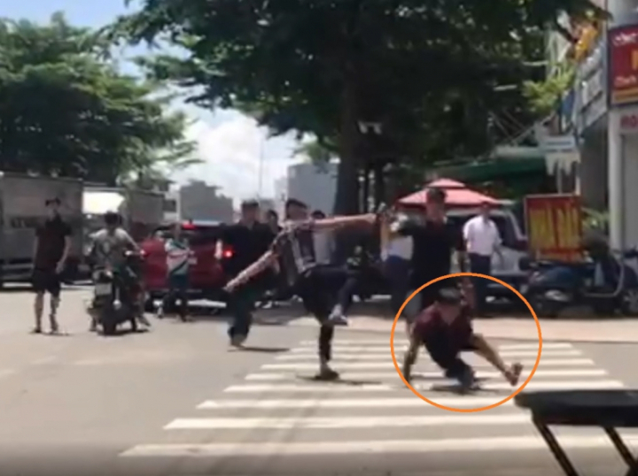 Một người bỏ chạy thì bị nhóm này lao đến đấm đá và dùng gậy gỗ đánh, sử dụng bình xịt hơi cay phun vào mặt. Người đàn ông trên chạy được vào trong quán cà phê trốn thì bị nhóm đối tượng này vây ráp phía bên ngoài, dùng ghế của quán ném vào bên trong.