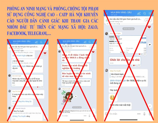 Các đối tượng giới thiệu đây là nhóm giao lưu và hỗ trợ anh em “mua bán vàng dầu các cặp ngoại tệ online; kiếm lợi nhuận trên sự chênh lệch tỷ giá”. Trong nhóm có nhiều “cò mồi” xác nhận đã thu được lợi nhuận và rút được tiền đúng như giới thiệu ban đầu. Chị P thấy đây là thủ đoạn đã được tuyên truyên trên các phương tiện thông tin đại chúng nên đã rời khỏi nhóm Zalo lừa đảo trên và may mắn không bị mất tiền.