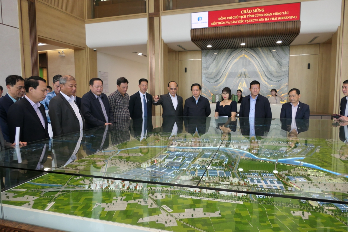 Chủ tịch Nguyễn Minh Hưng cũng báo cáo với Chủ tịch tỉnh và đoàn công tác về hướng phát triển trong thời gian tới để Khu công nghiệp và dịch vụ Liên Hà Thái là khu Công nghiệp xanh, có cơ sở hạ tầng hiện đại.