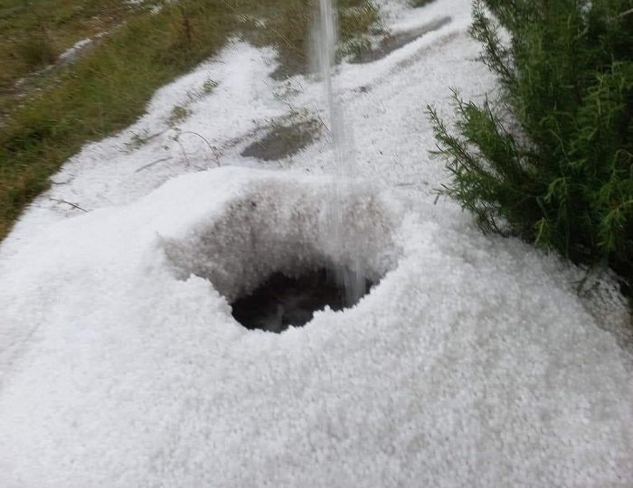 Mưa kéo dài hơn 1 giờ đồng hồ kèm theo những viên đá lớn bằng đầu đũa rơi xuống trắng xóa. Đá theo nước mưa chảy dồn về những vùng trũng thấp tạo thành từng đống cao. Hơn hai tiếng sau khi tạnh mưa, nhiều đống đá vẫn chưa tan chảy hết.