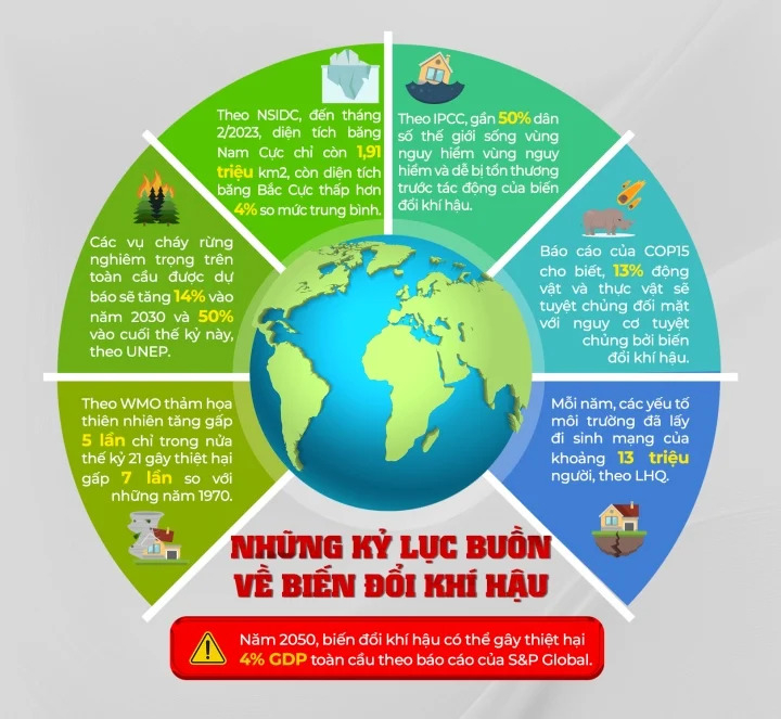Không chỉ ở Việt Nam, hiện tượng nóng lên toàn cầu cao bất thường đã xảy ra nhiều năm qua, với những biểu hiện cho thấy Trái đất đang đứng trước nhiều nguy cơ đầy nguy hiểm của biến đổi khí hậu.