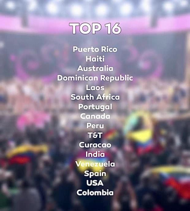 Sau tiết mục đồng diễn và hô tên vô cùng sôi động, các người đẹp hồi hộp chờ đợi màn gọi vào Top 16 chung cuộc. Lần lượt các thí sinh mạnh được MC hô tên và bất ngờ khi Ngọc Châu vắng mặt trong danh sách. Bên cạnh Ngọc Châu, một loạt thí sinh mạnh đến từ châu Á như Thái Lan hay Philippines cũng bị loại sớm.
