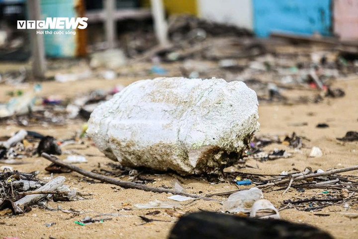 Rác thải ngập ngụa ở bãi biển Thiên Cầm chủ yếu là các mảng xốp vỡ vụn, chai nhựa, chai thủy tinh. Nhiều khu vực, rác tập kết dày đặc, bốc mùi hôi.