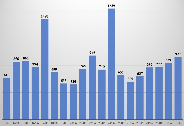 Theo số liệu của Bộ Y tế, từ ngày 26/6 đến nay, số người mắc mới COVID-19 ở nước ta liên tục tăng. Cụ thể, ngày 26/6 là 557; đến 1/7, số ca mắc tăng lên 927. Trong hai tuần gần đây, có ngày nước ta ghi nhận số ca tăng vọt lên hơn 1.600 người. Dù không nhiều như giai đoạn trước đây, điều này cảnh báo chúng ta không được lơ là công tác phòng chống dịch.