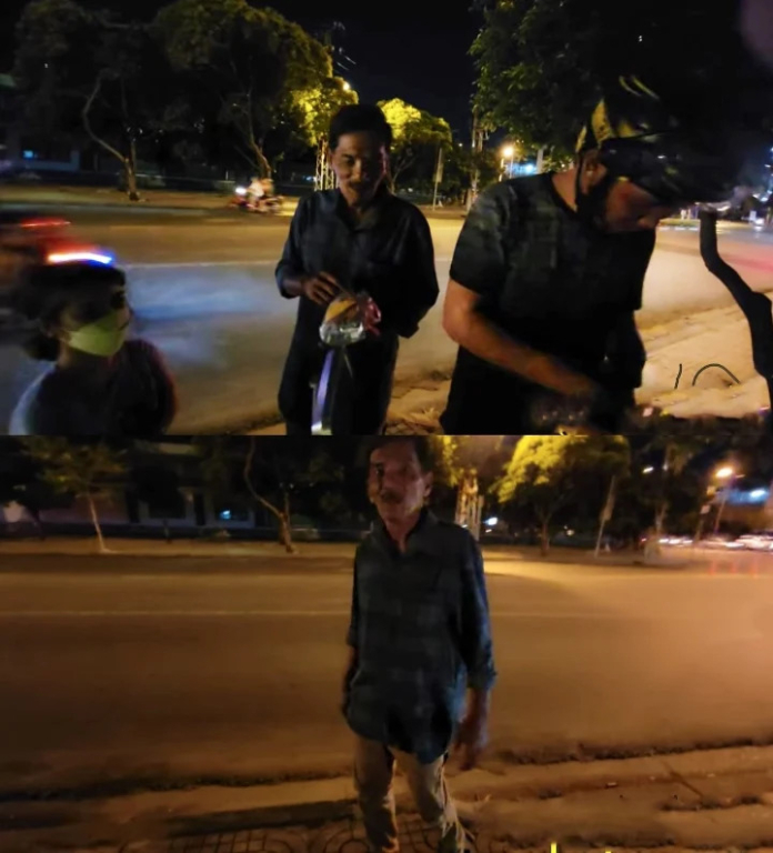 Trong đoạn clip, một nhóm bạn trẻ đi phát quà từ thiện đã bắt gặp nghệ sĩ Thương Tín một mình đi trên đường. Họ ngỏ ý bắt xe cho ông về nhà để an toàn hơn nhưng nam diễn viên từ chối. Sau đó, Thương Tín lên một chiếc taxi để rời đi.