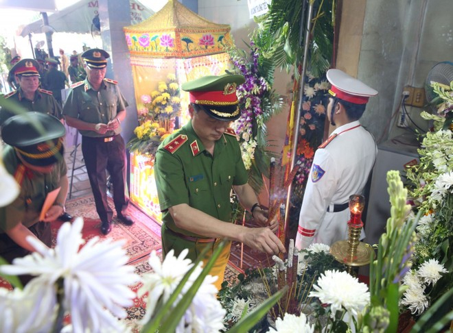 Trung tướng Nguyễn Duy Ngọc, Ủy viên Trung ương Đảng, Thứ trưởng Bộ Công an thắp hương trước linh cữu Trung tá Nguyễn Xuân Hào
