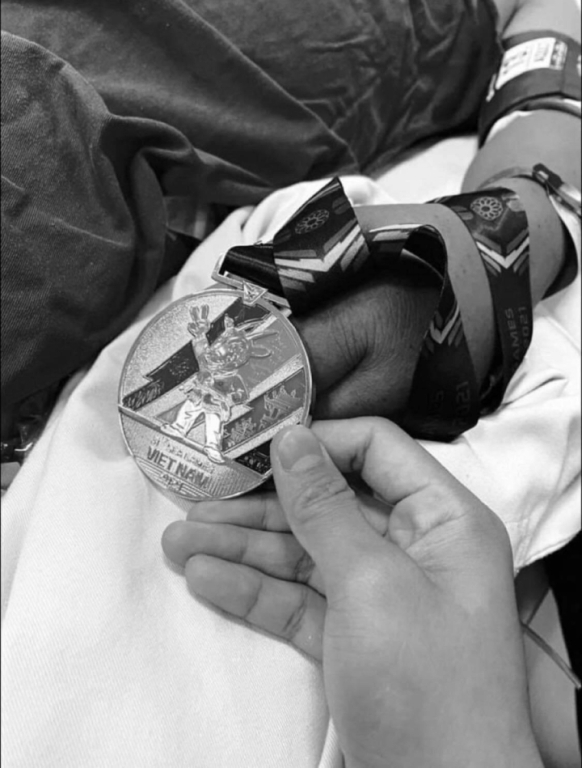 Nhưng sáng nay, trên trang mạng xã hội cá nhân, Tô Thị Trang đăng tải bức ảnh cô đặt tấm huy chương vàng SEA Games 31 vào tay người cha trên giường bệnh. Cha của nữ võ sĩ này vừa qua đời hôm nay. Ông bị bệnh nặng từ lâu và đã cố gắng gượng đến khi con gái giành huy chương vàng SEA Games 31.