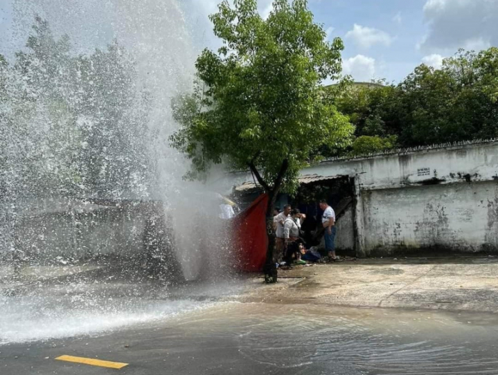 Chưa dừng lại, chiếc xe ô tô còn tông gãy một trụ nước cứu hỏa khiến nước phun xối xả trên đường và tiếp tục lao vào, tông sập bức tường bằng gạch của một công ty đối diện trụ sở Đội CSGT An Sương.